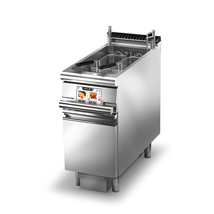 Digitalna električna friteza s jednim koritom kapaciteta 22 litre sa sistemom filtracije ulja i automatskim podizanjem košare, širine 400 mm i dubinom 900 mm snage 22 kW.