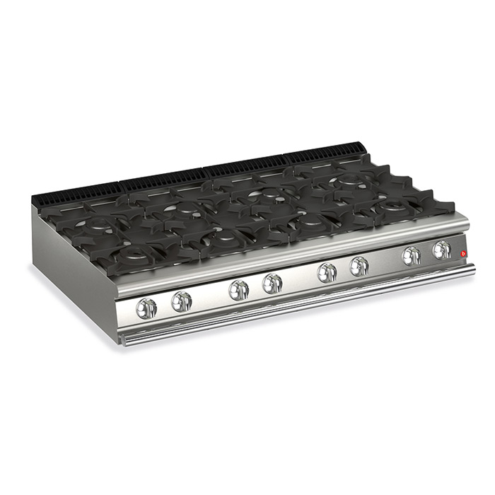 Baron plinski stolni štednjak iz linije 900 mm dubine s osam plamenika ukupne snage 58,4 kW (3,5 kW + 5,7 kW + 10 kW) savršeno će se uklopiti u svaku kuhinju.