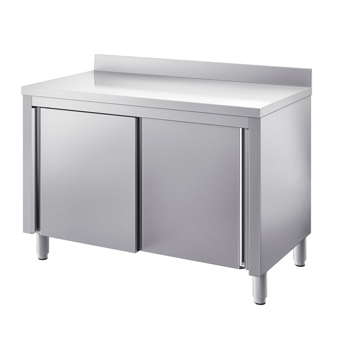 Radni stol dubine 600mm, različitih širina s jednim kliznim i jednim fiksnim vratima, sa zaštitom za zid – INOX BIM TVA6.xA (oznaka X ovisi o širini odabranog modela)