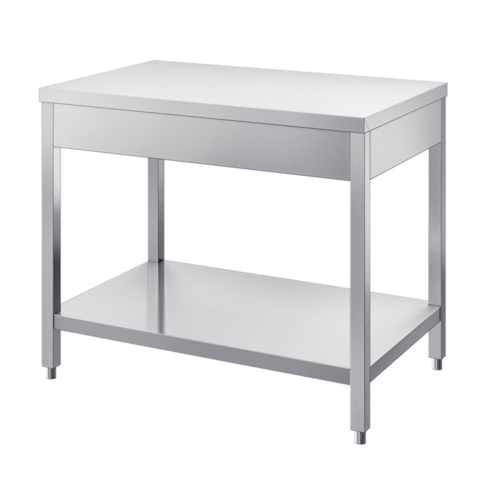 Radni stol dubine 600mm, različitih širina s donjom policom, bez zaštite za zid – INOX BIM TVR6.x (oznaka X ovisi o širini odabranog modela)