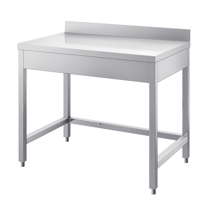 Radni stol dubine 700mm, različitih širina s okvirom na tri strane i zaštitom za zid – INOX BIM TVC.xA (oznaka X ovisi o širini odabranog modela)