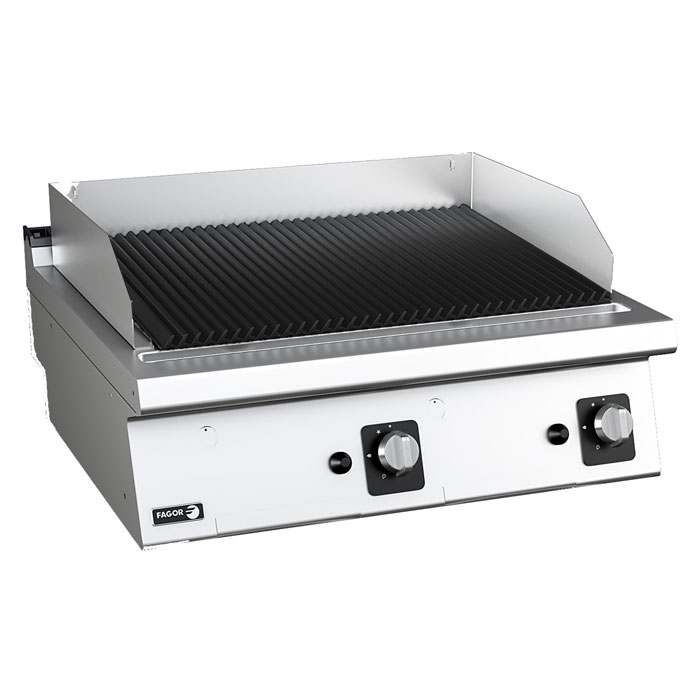 Stolni plinski roštilj od čelika iz linije 900 FAGOR B-G910 ima površinu za pečenje 680 x 690 mm, snagu od 22 kW i ukupne dimenzije 800 x 930 x 290 mm